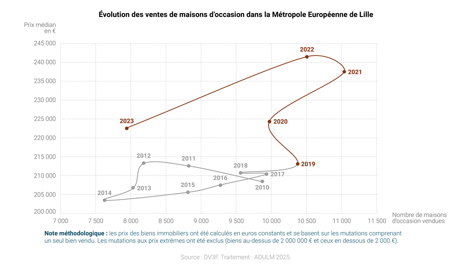 - Observation : mutations ordinaires du logement (ventes dans le parc d’occasion et VEFA). Sont exclues les mutations non ordinaires (opérations à caractère social, ventes entre bailleurs sociaux, ventes liées à une démolition/reconstruction).