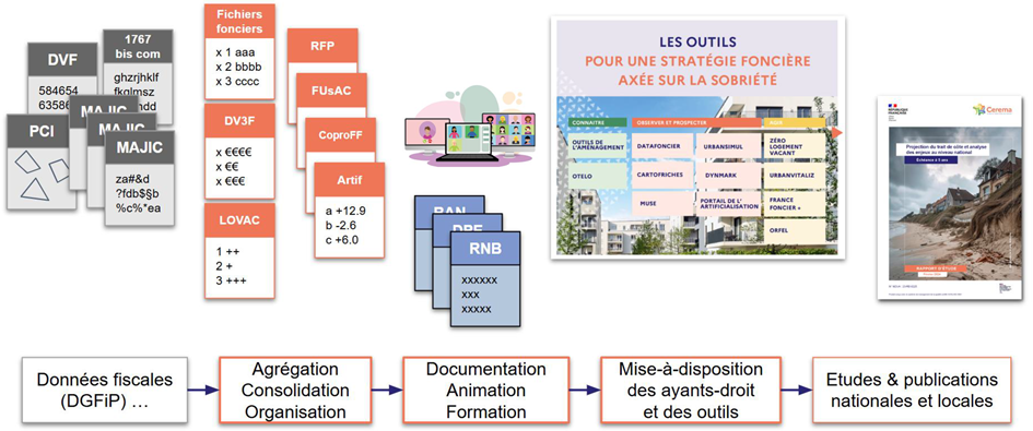 La démarche s’est construite à partir d’un diagnostic conduit à partir d’entretiens et de questionnaires en direction des communes, EPCI urbains et ruraux, départements, agences d’urbanisme, DDTM… Celui-ci a révélé des usages et besoins très différents selon les profils (novice, intermédiaire, expert) et des freins à l’utilisation des données liés à l’appropriation de celles-ci, aux formats, à la fiabilité et à la cohérence des jeux de données.