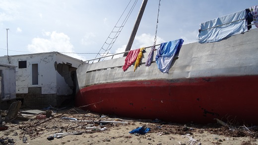bateau échoué suite à l'ouragan Irma - CeremaLes caractéristiques géographiques, géologiques et géomorphologiques du littoral de Saint-Barthélemy et Saint-Martin, ainsi que les habitats naturels terrestres et marins, témoins de certains mécanismes d’évolution du littoral.