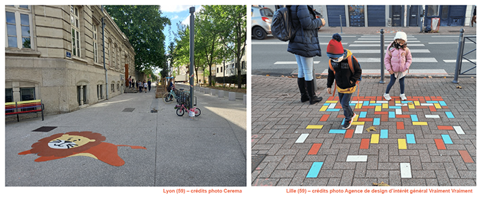 A Lyon s’est engagé à aménager de nombreuses rues devant les établissements scolaires, comme plusieurs autres grandes collectivités françaises. Les enfants en élémentaire, mais aussi des collégiens, participent aux réflexions sur les choix d’aménagements, par exemple sur des marquages d’animation dans les zones de rencontre.