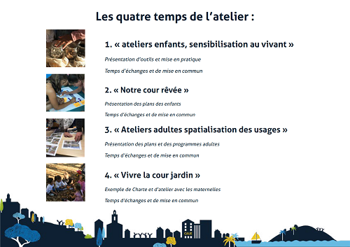 A noter que les réaménagements de cours d’écoles sont des démarches qui prennent du temps : ce sont des projets qui doivent mûrir, des craintes sont à déconstruire, des relations sont à reconstruire entre des acteurs parfois dans une posture de défiance les uns vis-à-vis des autres.