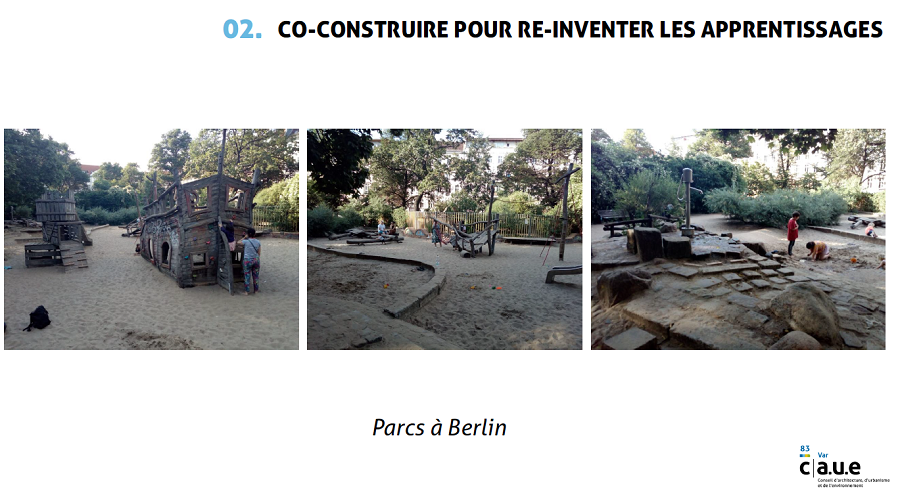 Le CAUE du Var a présenté le processus "Cours-jardins, tous jardiniers !" permettant la co-construction d’une cours d’école à partir du ressentie et du besoin de tous les acteur. Cette démarche répond à la fois à l’urgence climatique et environnementale (traitement des ICU, confort d’été, désimperméabilisation), et à l’urgence pédagogique en reconnectant les enfants a la nature.