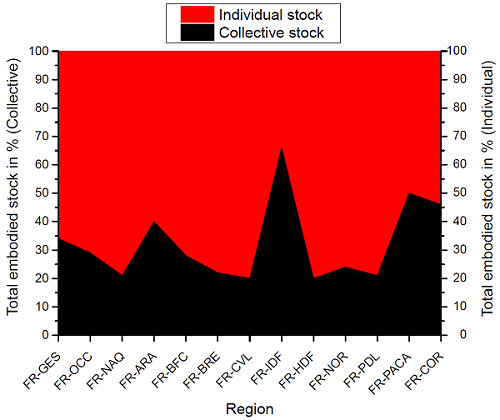Le stock total des matériaux du secteur résidentiel a été quantifié (Figure 2). Il a été réparti sur les deux grands types de logements identifiés (individuel et collectif).