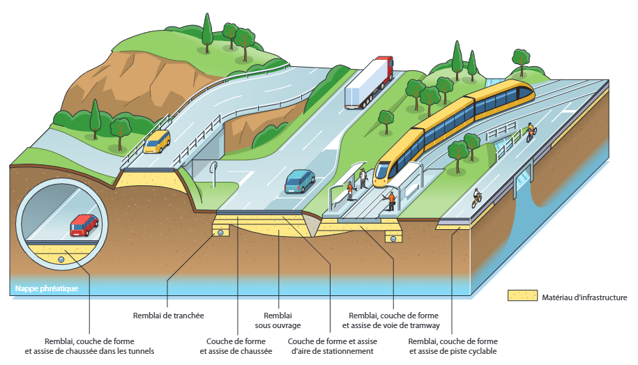 Les déchets minéraux du BTP (60 millions de tonnes par an en France) représentent un gisement de matériaux qui peuvent remplacer l'usage de ressources minérales primaires pour la construction routière dans le cadre de démarches d'économie circulaire. Pour s'assurer que leur réutilisation n'a pas d'impact environnemental ou sanitaire, une méthode d'évaluation de ces impacts a été mise au point et est présentée dans le guide "Valorisation de matériaux alternatifs en infrastructures linéaires de transport terrestre" (2025).