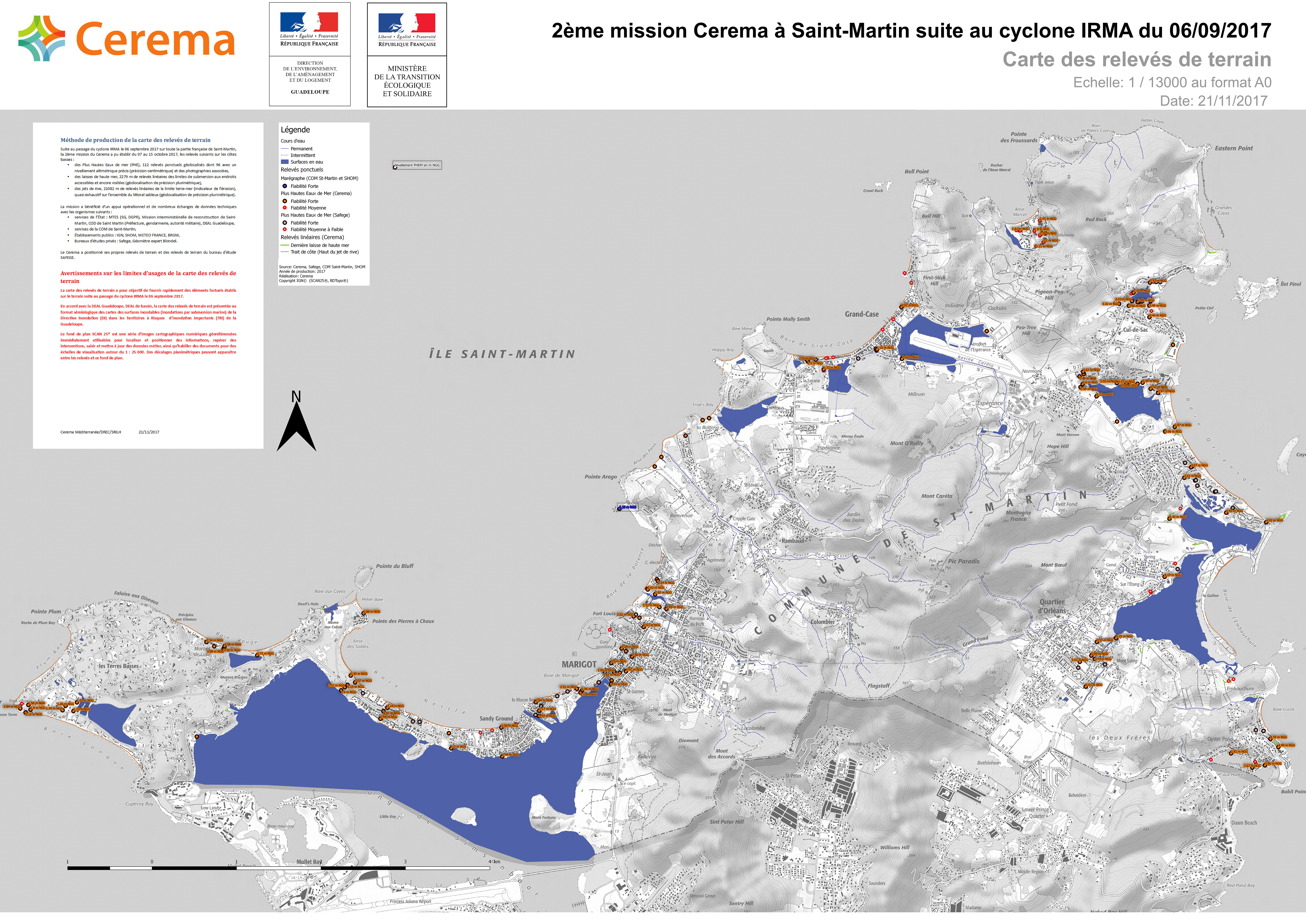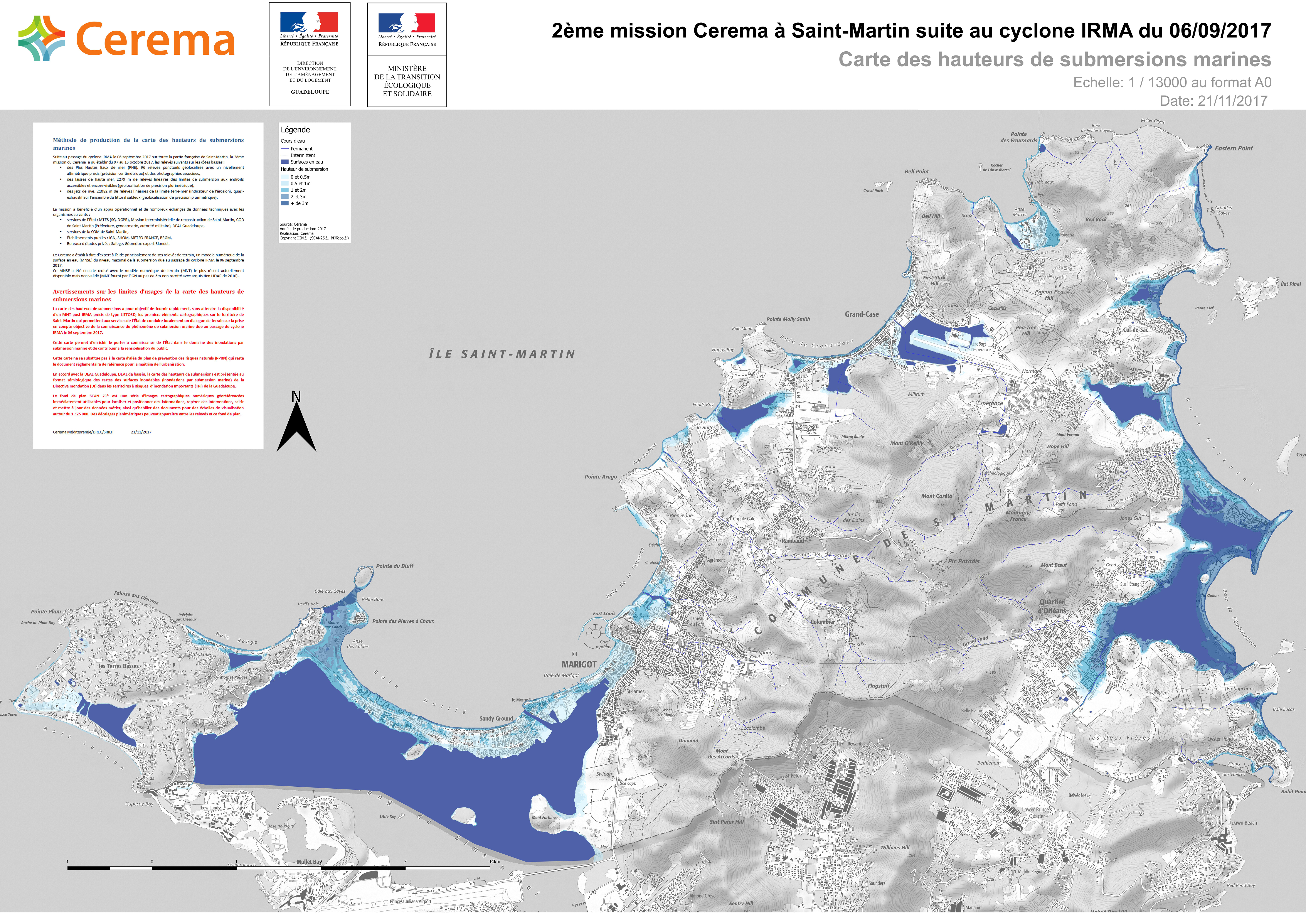 L’objectif de cette nouvelle mission était de produire une carte des hauteurs de submersions marines et des érosions du littoral à Saint-Martin suite au passage de l’ouragan IRMA à Saint-Martin le 06 septembre 2017.