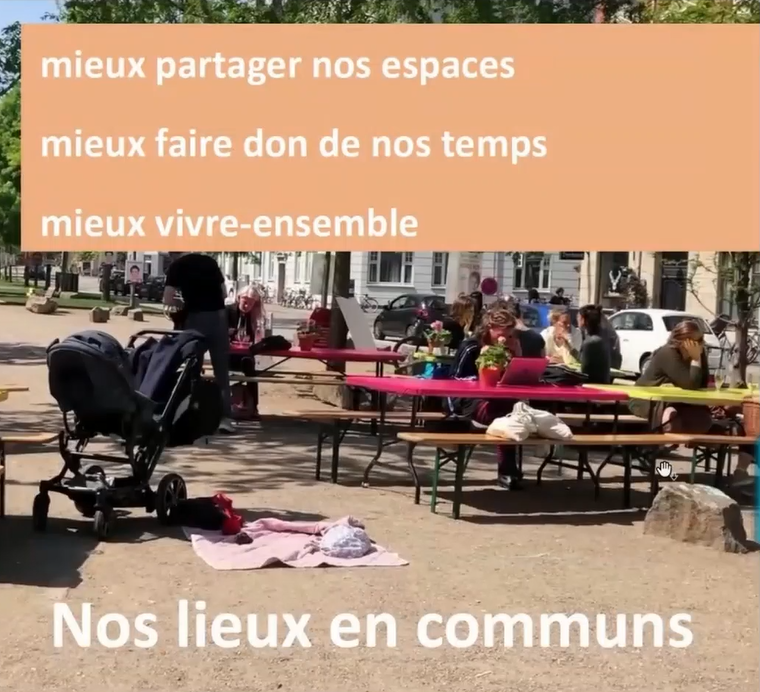 A travers le sujet des communs dans l’espace public, il s’agit de questionner leur aménagement et leur potentiel à favoriser le vivre ensemble, à faire du lien et encourager la convivialité. Le nuage de mots produit en séance avec les participants confirme l’intérêt de cette problématique, en soulignant la diversité des communs susceptibles d’être partagés/incarnés mais aussi questionnés dans l’espace public, ainsi que les tensions et concurrences possibles dans l’articulation et la gestion de ces communs.