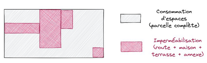 L’étude mesure la consommation d’espace au sens des données du portail national de l’artificialisation. De ce fait, la démarche permet une mesure de la consommation d’espaces naturels, agricoles et forestiers, mais ni l’imperméabilisation, ni l’artificialisation au sens défini par les décrets. La consommation d’espaces inclut l’ensemble des opérations d’aménagement situées sur des espaces naturels, agricoles ou forestiers, qu’ils soient ou non situés dans la tâche urbaine.
