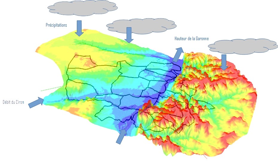 Le modèle Telemac, qui se base sur plus de 2,3 millions de mailles, a permis en tout point du territoire d’étude de fournir la hauteur atteinte par l’inondation mais aussi la vitesse d’écoulement des eaux de ruissellement.
