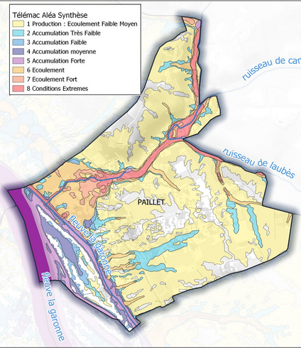 Sur ce territoire, 4 communes, en rive droite de la Garonne, sont particulièrement concernées par l’aléa ruissellement : Paillet, Lestiac-sur-Garonne, Rions et Cardan.