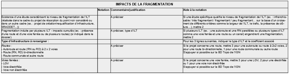 En complément, le Cerema a aussi été missionné par la DEB dans le cadre du Fonds vert (axe 3 - accompagnement de la SNB 2030, volet 4 - restauration écologique) pour établir une grille de hiérarchisation des points noirs à résorber.