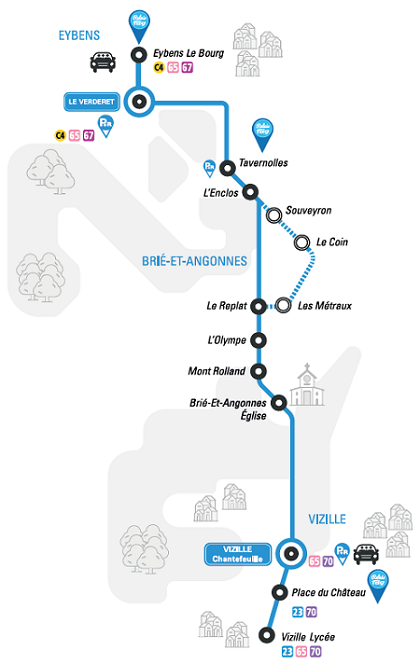 Opéré par le gestionnaire du réseau de transport urbain Semitag devenu ensuite M Tag. Il s’agissait de l’expérimentation d’une ligne de covoiturage sur le corridor Vizille - Eybens sur un itinéraire de 12km, en complément d’une ligne de bus existante Flexo (ligne à la demande en heure creuses).
