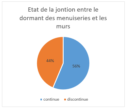 Pour 44% des logements, tout type confondus, il existe une discontinuité dans les jonctions entre les dormants des menuiseries et les murs.