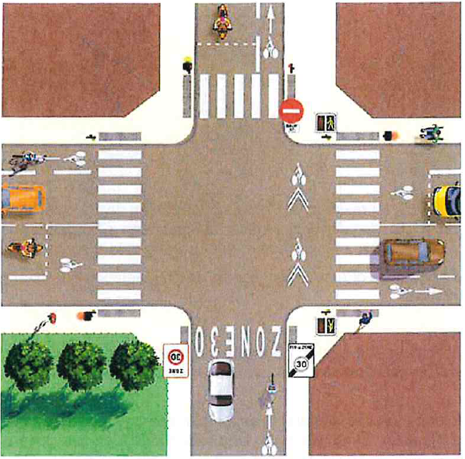 Analyse du marquage des trajectoires cyclables en sortie de double-sens sur des carrefours à feux
