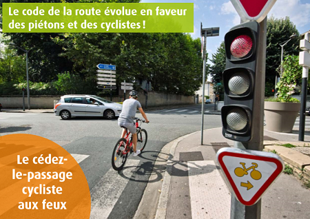 Les signaux innovants : le panonceau de cédez-le-passage cycliste au feu rouge (plusieurs directions employées selon les configurations rencontrées) ainsi que la version lumineuse du cédez-le-passage cycliste au feu rouge (feu R19) : plusieurs carrefours à feux serviront de sites d’expérimentation, dont certains traversés par des tramways ou des bus. En particulier, un de ces feux R19 a été installé début 2021 dans un carrefour traversé par le tramway. Il autorise certains mouvements cyclistes compatibles avec le phasage du carrefour à feux : par exemple le mouvement consistant à longer la plateforme du tramway en même temps que celui-ci, alors que les véhicules motorisés sont arrêtés au rouge. De ce fait, les cyclistes peuvent réaliser ces mouvements avec un minimum d'interactions, tout en cédant le passage aux usagers bénéficiant de la priorité.- Les trajectoires cyclistes matérialisées cyclistes déployées en sortie de double-sens cyclable dans les carrefours à feux : ces trajectoires matérialisées apposées de manière contiguë aux passages piétons permettent aux cyclistes sortant du double-sens cyclable de traverser en se conformant au signal bicolore qui s’impose aux piétons. Ceci évite l’installation coûteuse d’un feu spécifique pour les cyclistes. Ce dispositif sera évalué dans quatre carrefours aux configurations différentes (voir schéma ci-contre).