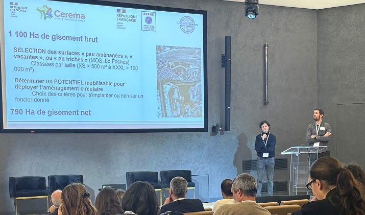 Alexandre Pavoine, Responsable des activités Economie Circulaire des Matériaux du BTP au Cerema et Ronan Trottier, Directeur associé de G-ON, ont présenté deux outils d’aide à l’engagement et à la réalisation des projets du BTP circulaires : les labels complémentaires 2EC et Circolab.