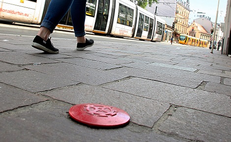 Balise rouge au sol sur un itinéraire à MulhouseDe nombreuses communes disposent d’atouts patrimoniaux, naturels, ou d’équipements disséminés sur leur territoire. Pourtant, il est fréquent qu’aucun cheminement balisé ne permette aux marcheurs réguliers, itinérants, ou aux piétons utilitaires, de relier confortablement ces points d’intérêts et de profiter pleinement des charmes des villes et des villages.