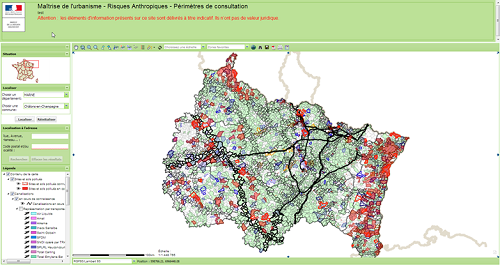 En fonction de la zone sélectionnée, l’outil Géo-IDE permet ainsi de retrouver les différentes couches d’information qui correspondent aux différents types de risques anthropiques connus avec des règles d‘urbanisme ou en cours de connaissance ; les différentes contraintes d’urbanisme (PAC, SUP, PPRT, restriction d’usage) qui s’appliquent ; ainsi que les démarches à suivre et les services de l’État à contacter le cas échéant.