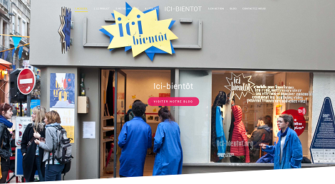 Page d'accueil du blog Ici BientôtA Saint-Etienne des associations locales ont mis en place un accompagnement des commerces et des boutiques tests avec le CREFAD (Centre de Recherche d’Étude de Formation à l’Animation et au Développement) à travers le projet Ici Bientôt qui met en valeur les vitrines de la ville, les commerces et les rues, et imagine des usages pour les boutiques vides. L’objectif est aussi d’accompagner les porteurs de projets pour tester ou lancer leur activité.