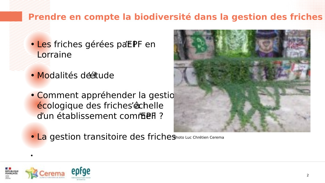 Prise en compte de la biodiversité dans la gestion des friches à différentes échelles
