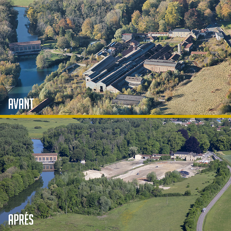 Recyclage de bâtiments industriels pour un site destiné à la renaturation des sols