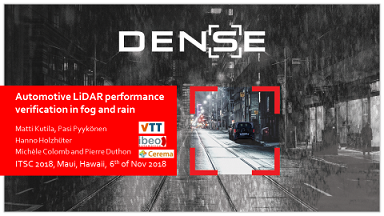 C’est au cours d’une session spéciale sur les véhicules autonomes que les travaux du projet DENSE ont illustré comment les technologies LIDAR et RADAR pouvaient être affectées par les brouillards denses, ou des pluies intenses. Les propositions d’innovations technologiques proposées dans le projet DENSE, ont fait l’objet d’échanges fructueux avec les experts internationaux des transports intelligents, au cours de cette manifestation qui a réuni plus de 1000 participants.