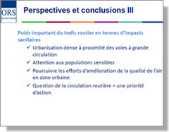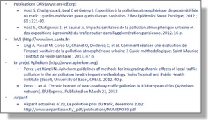 De nombreuses études sont produites actuellement sur le fait de résider à proximité de voies à fort trafic. L’ORS a fait une synthèse de ces études et a pu mettre en évidence l’impact du trafic routier sur la genèse de certaines pathologies :