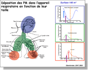 Fraction PM2,5 – PM1 : dans les voies aériennes à différents niveaux avec accumulation au niveau des fourches.