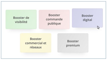 Il comprend 5 leviers d’accompagnement : un levier sur la visibilité (mise en avant des activités des entreprises sur les canaux de communication ministérielle), un accompagnement digital (formations en ligne, webinaires, mise à disposition d’études de marché, d’une base de contacts "presse", d’outil de partage d’offre d’emploi), un accompagnement commercial et réseaux (organisation de session pitch investisseurs), un accompagnement sur la commande publique (mise à disposition d’un outil de contacts institutionnels, participation à des salons professionnels), et un booster "Green20", d’accompagnement sur-mesure proposé aux entreprises lauréats de ce programme.