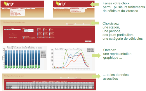 Accessible en open data sur certains points de mesures, IRIS dispose également d’une plate-forme sécurisée avec authentification plus particulièrement destinée aux professionnels. Celle-ci regroupe l’ensemble des points de comptages renseignés par les exploitants.