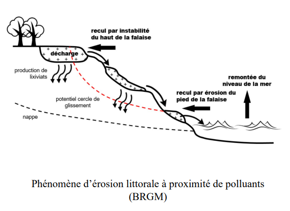 Le Cerema a recensé et cartographié en mai 2022 l’emplacement d’anciennes décharges sur le littoral normand après enquête auprès de communes. Les études de terrain se sont concentrées sur les communes de Sainte-Marguerite-sur-Mer, Sotteville-sur-Mer et Carentan. Sur ces trois sites, des anomalies géologiques ont été détectées, signalant la présence de déchets enfouis susceptibles de se propager en raison de l'érosion côtière et de polluer les nappes phréatiques.
