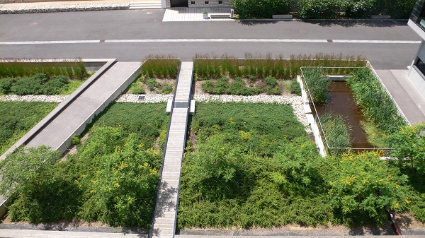 Vue du jardin de pluie depuis la toiture - J Champres - Cerema
