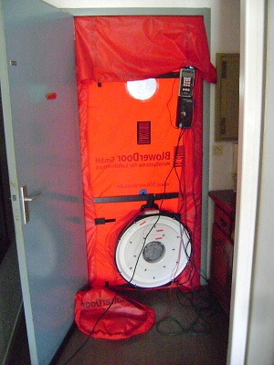 Mesures d’étanchéité à l’air de chaque logement avec Blowerdoor, selon le protocole d’essai norme NF EN ISO 9972, afin d’évaluer les fuites selon la méthode des contrôles réglementaires pour les constructions neuves, pour la RE2020.