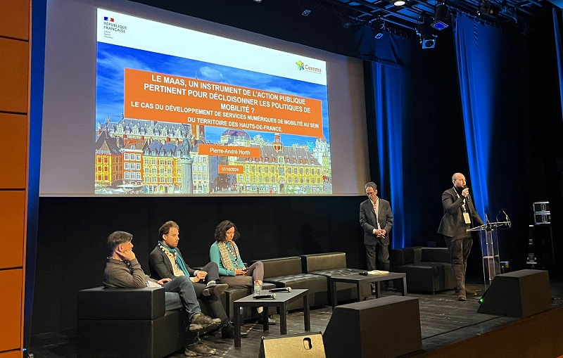 Pierre-André Horth, chercheur au Cerema (laboratoire MATRIS ) a présenté travaux issus de sa thèse publiée à l’automne 2024. Il a notamment présenté son analyse du potentiel du décloisonnement de la mobilité par les services numériques de mobilités appelés MaaS en prenant le cas d’usage du territoire des Hauts-de-France.