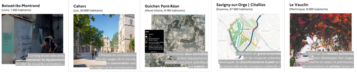 Annoncé en juillet 2024, 5 projets sont lauréats de cette première édition. Pour en savoir plus sur ces projets, visionnez le webinaire de présentation des 5 collectivités lauréates sur la communauté Mobilités piétonnes :
