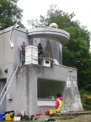 - D’un système de distancemétrie infrarouge automatique ( station totale automatisée, réseau de repères fixes de référence et réseau de repères sur le mouvement de versant), qui effectue des mesures de distance depuis le versant opposé.