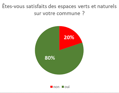 On constate que, quelles que soient les typologies de territoire, les habitants sont relativement satisfaits de leur cadre de vie actuel et notamment des espaces verts avec un taux de satisfaction élevé autour de 80%. On peut également noter l'importance des espaces agricoles, dans les communes rurales et périurbaines, qui participent à l'identité "campagnarde" de la commune et ancrent un sentiment positif d'habiter un environnement perçu comme "vert et naturel".