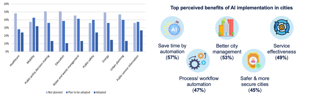 Une grande partie des villes ont l'intention de mettre en œuvre l'IA pour faire face aux défis urbains dans la perspective des ODD, avec une meilleure implication des citoyens et en tenant compte de l'occurrence croissante de différents risques.