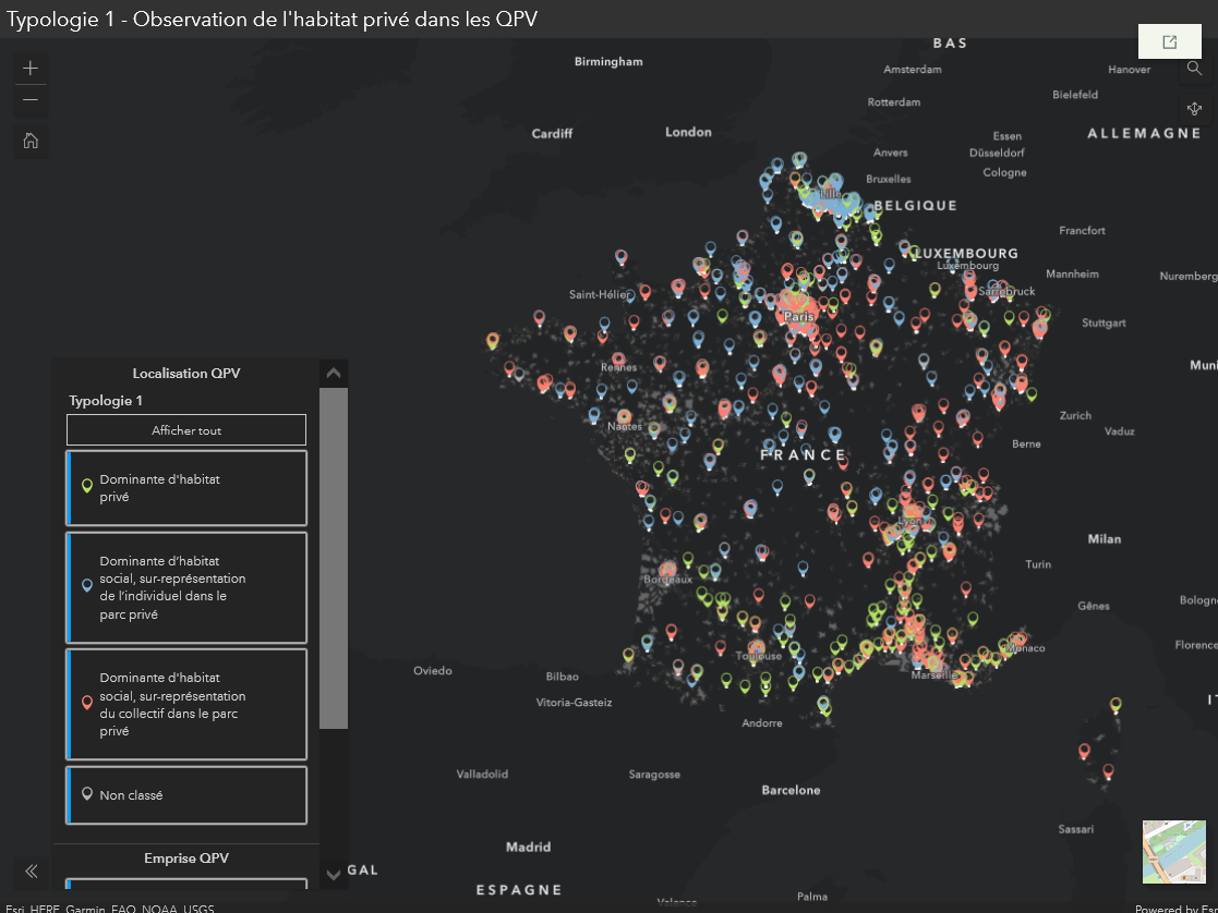 L’ensemble des résultats sont disponibles d’une part sur une storymap et d’autre part via ce lien, permettant d’accéder à un diaporama de restitution et à l’ensemble des indicateurs à l’échelle de chaque QPV et chaque QVA. La démarche a été présentée le 10 mars à l’occasion d’un Webinaire RDV de la Politique de la ville qui a été suivi par plus de 200 personnes. Elle permet également d’enrichir l’outil SIG Politique de la Ville. L’ANCT, le Cerema et la DGLAN envisagent à l’avenir de mettre à jour ces indicateurs ce qui permettra aussi un suivi de la trajectoire des quartiers.