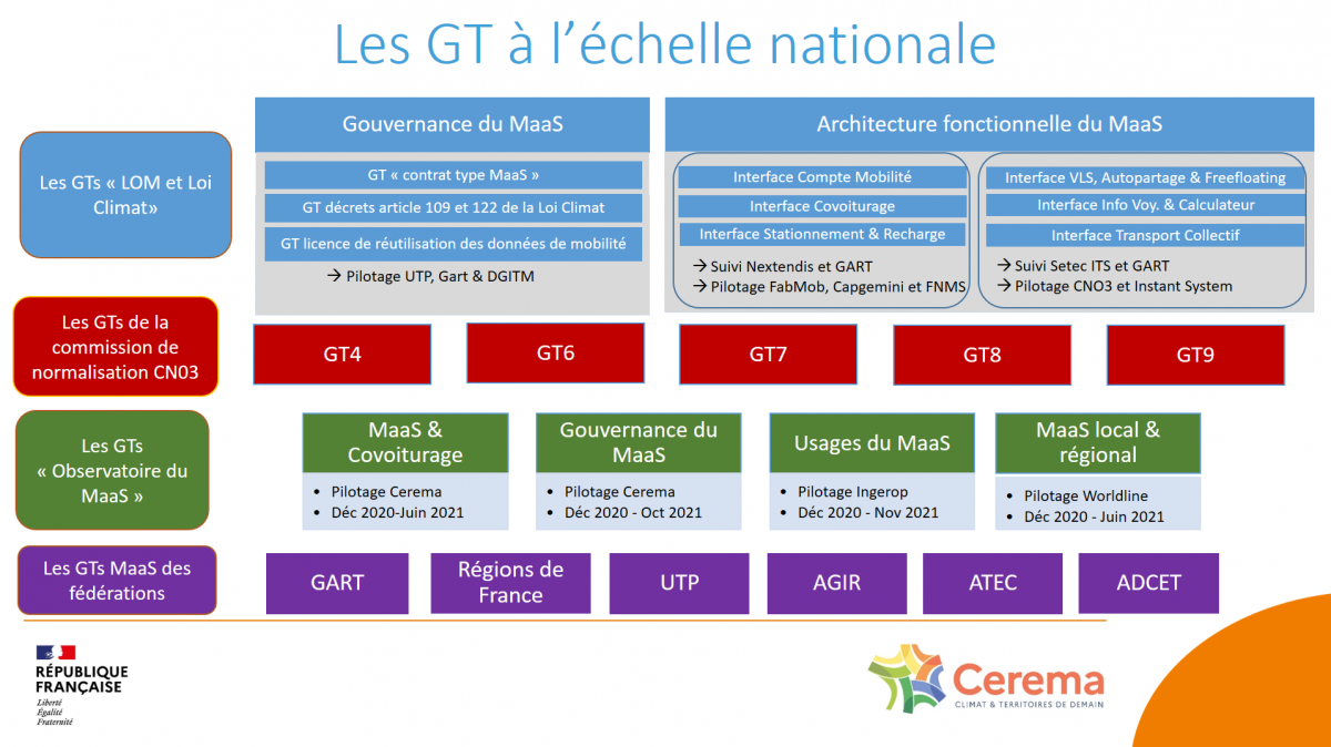 Sigrid Clavieras (UTP) a présenté les différents groupes de travail nationaux oeuvrant sur le sujet du MaaS. Chacun a un objectif qui lui est propre, et tous ces groupes ont vocation à bien communiquer entre eux.