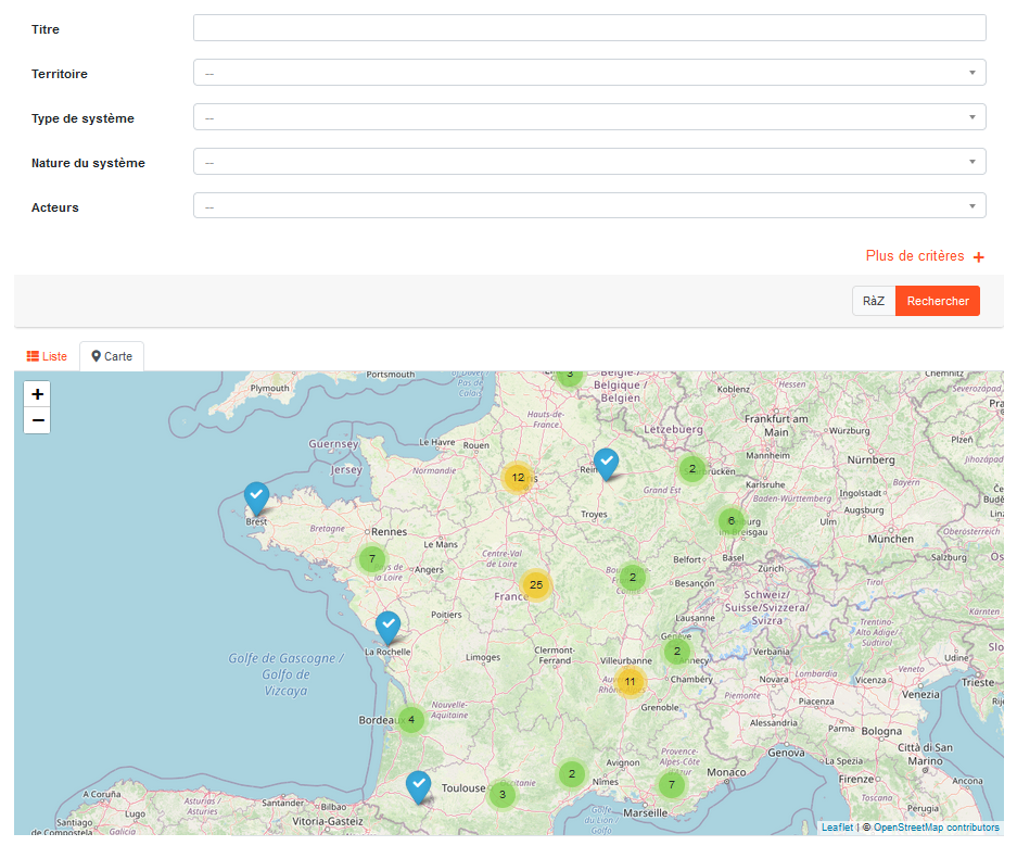 Des critères de recherche permettent de retrouver un système particulier, ou d'obtenir la liste des systèmes correspondant à un ou plusieurs critères. Les résultats sont disponibles sur une carte ou par une liste.