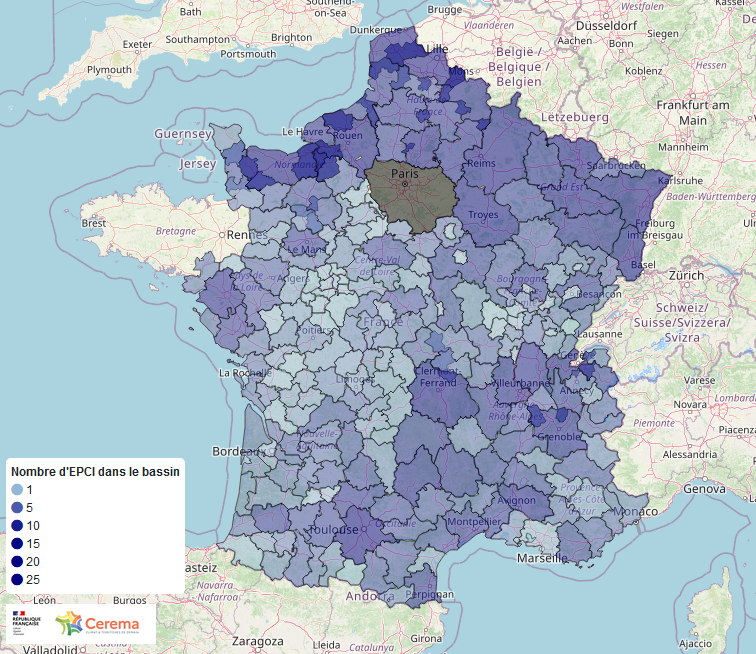 238 bassins définis 5 EPCI par bassin en moyenne