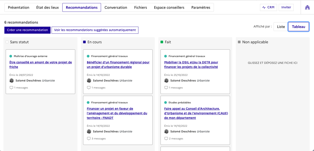 Pour les équipes métier de conseillers, toutes les informations sur le projet sont réunies au même endroit. Un exemple d’utilisation par l’équipe EcoQuartiers à Tallard dans les Hautes Alpes (voir ici).