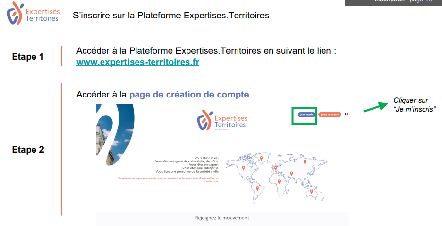 - Créez votre compte sur la plateforme Expertises.Territoires : https://www.expertises-territoires.fr/