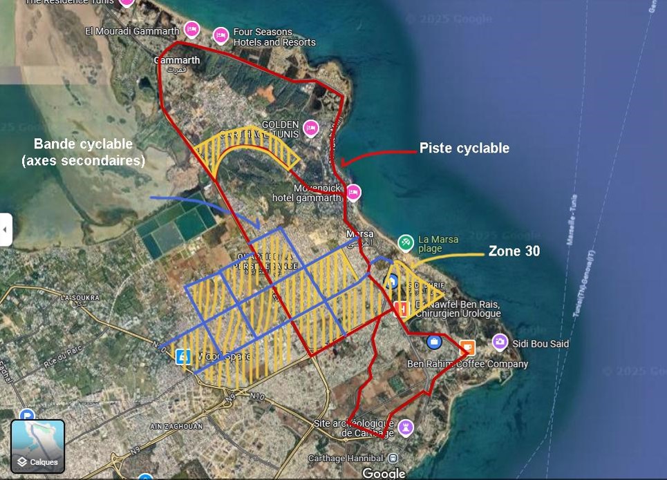 Proposition de réseau cyclable à implanter à long terme pour la Municipalité de La Marsa