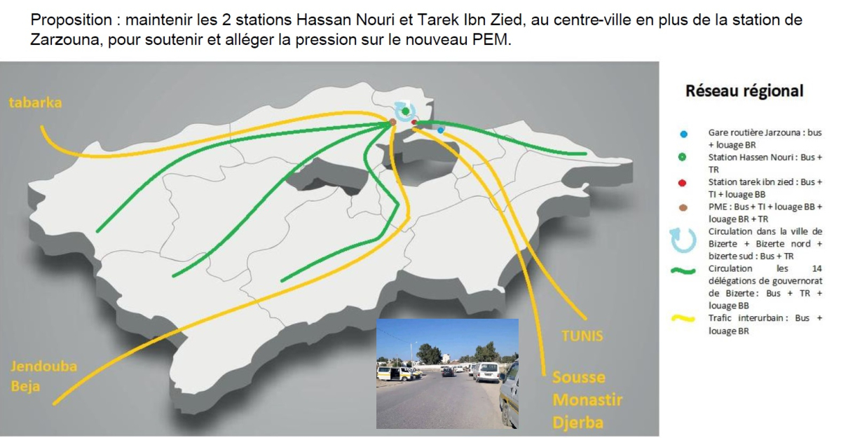 Le projet de pôle d’échange à Bizerte s’inscrit dans une démarche stratégique d’organisation des déplacements à l’échelle du gouvernorat, dans un contexte d’anticipation du nouveau pont fixe en travaux.