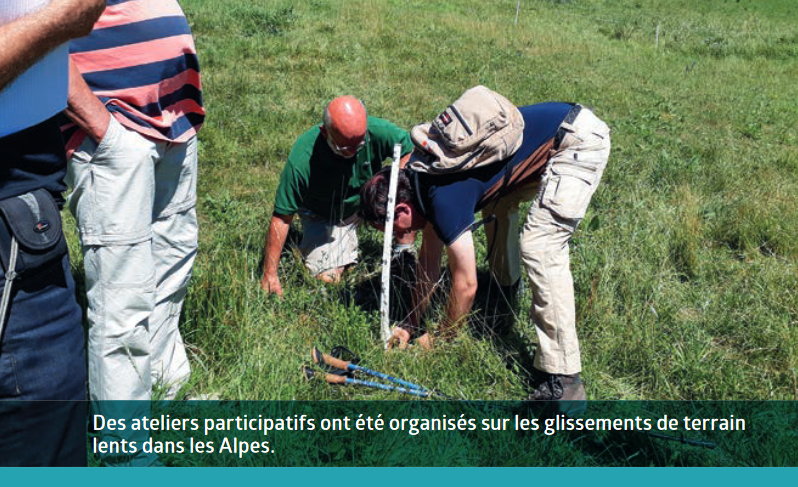 Dans les Alpes, un projet de recherche-action mené sur les glissements de terrain lents s’est appuyé sur un ensemble d’ateliers participatifs, dont certains au domicile même des habitants, avec les élus de plusieurs communes autour de Corps (Hautes-Alpes) et de la Salle-en-Beaumont (Isère) et des experts en géotechnique.