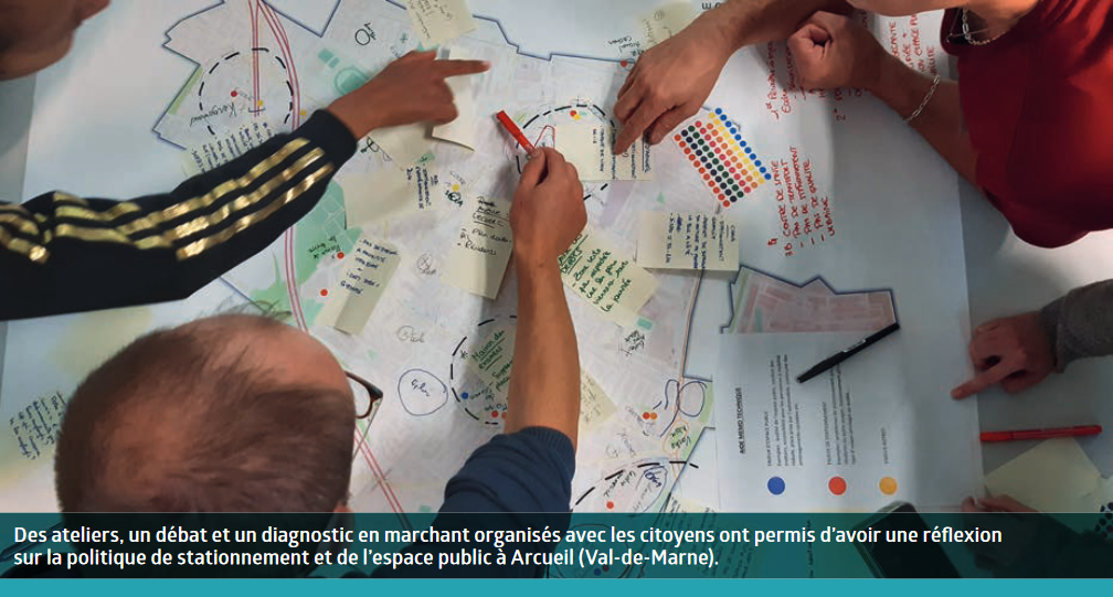 La réticence à aborder certains sujets avec les habitants tient parfois à la crainte de ne pas dépasser la somme des intérêts particuliers. Des méthodes existent pour animer les débats et faire émerger des points de vue collectifs. Un travail mené avec la ville d’Arcueil (Val-de-Marne) sur la politique de stationnement, avec un groupe d’habitants tirés au sort, a été de ce point de vue riche d’enseignements. Sur ce sujet très pointu, parfois passionnel, la démarche a permis à la fois d’enrichir l’étude technique à partir d’un "diagnostic en marchant", et de provoquer la montée en compétences de tous. Un débat mouvant a permis d’organiser les échanges de points de vue sur des enjeux transversaux comme le partage de l’espace public.