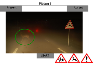 Pour relever ce challenge, l’objectif de la thèse préparée par Boris Quétard était d’approfondir les connaissances sur le lien entre prise d’information et prise de décision. Cela afin de développer, à terme, des systèmes de perception « bio-inspirés » permettant de reproduire, puis dépasser les capacités cognitives de conducteurs humains (perception, prise de décision mais aussi, à terme, des fonctions d’attention, de mémoire, d’apprentissage). Ainsi le travail réalisé a porté sur ces questions de recherche fondamentale en psychologie cognitive qui ont été appliquée à la situation critique de détections de piétons dans le brouillard.