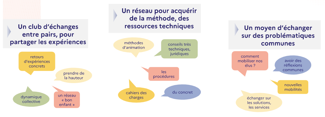 Ce club est conçu comme un espace de dialogue visant à créer un réseau propice à l’acculturation collective sur les différents aspects de la planification de la mobilité : témoignages, retours d’expériences de collectivités, mais aussi apports d’éléments de méthodes et d’outils sont au menu des séances de ce club dont le programme est co-construit avec ses membres. Un bureau restreint aide à préciser et à valider le contenu des différentes séances. Ce bureau est constitué du Cerema et de représentants de la communauté de communes du Val-de-Drôme en Biovallée, de la communauté d’agglomération du Pays de Gex et du syndicat Valence-Romans-Mobilités.