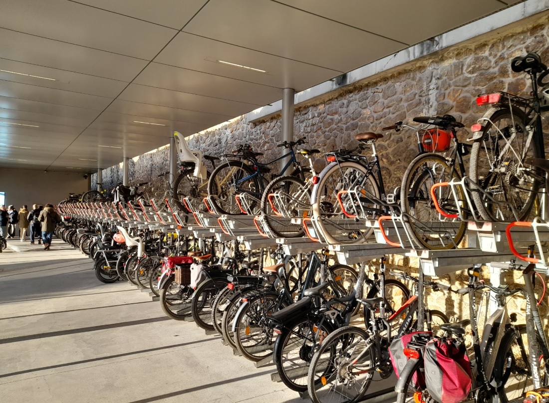- La difficulté à bien cerner le dimensionnement de l’offre de stationnement vélo sécurisé : en matière de rabattement vélos, l’offre de stationnement vélo sécurisée, même qualitative et gratuite, ne créera pas systématiquement un niveau de demande correspondant à un objectif de part modale sur le trafic total de la gare. Il est donc plus recommandé de ne pas surdimensionner déraisonnablement l’offre, tout en anticipant dans l’aménagement une augmentation facile de sa capacité, et de diversifier aussi les supports sur un PEM (arceaux et consignes collectives)